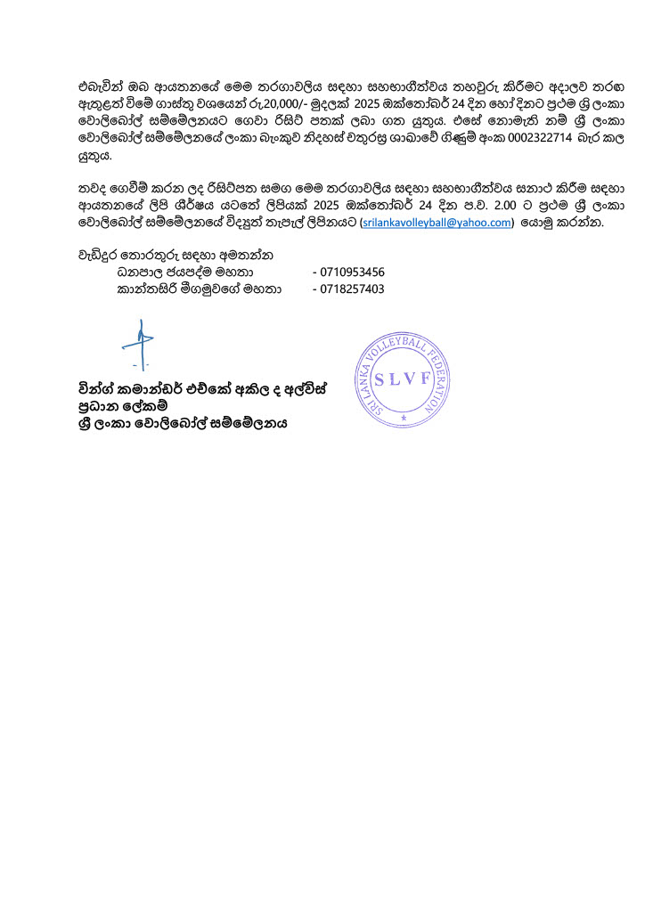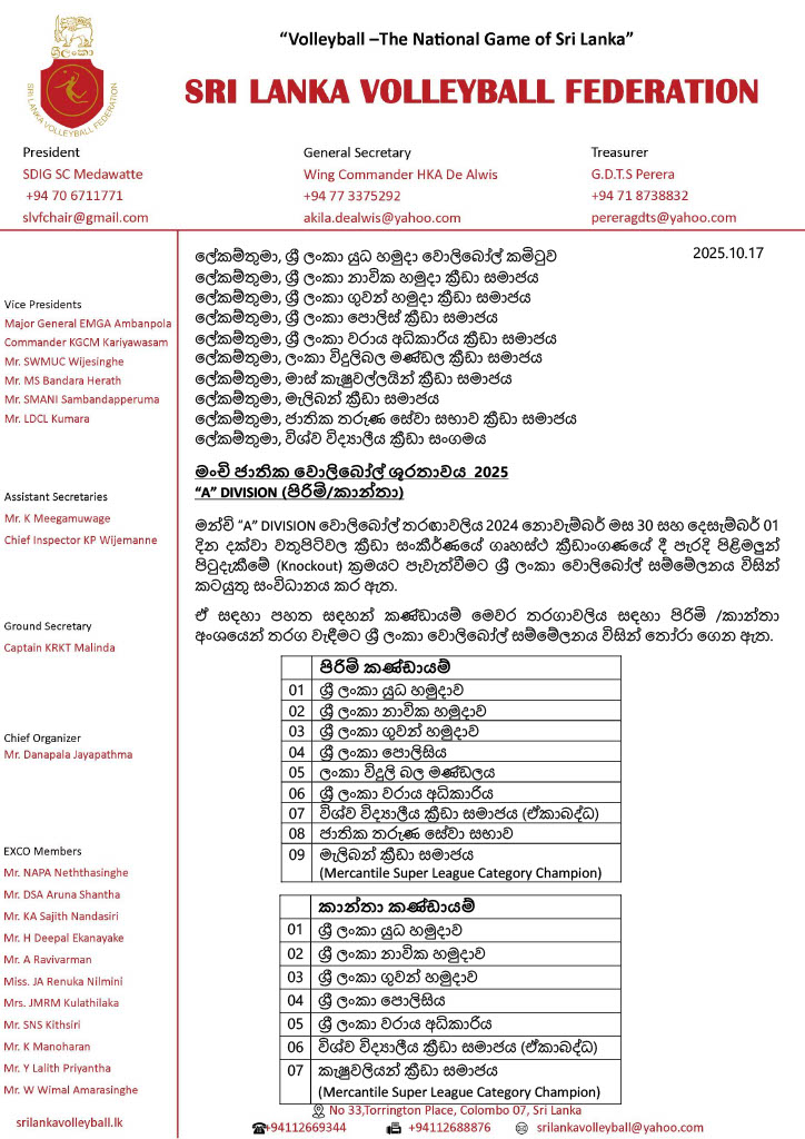 මංචි ජාතික වොලිබෝල් ශූරතාවය 2025 "A" DIVISION (පිරිමි/කාන්තා) Super League